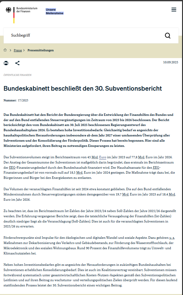 30th Subsidy Report • Full Report (German): 30. Subventionsbericht
